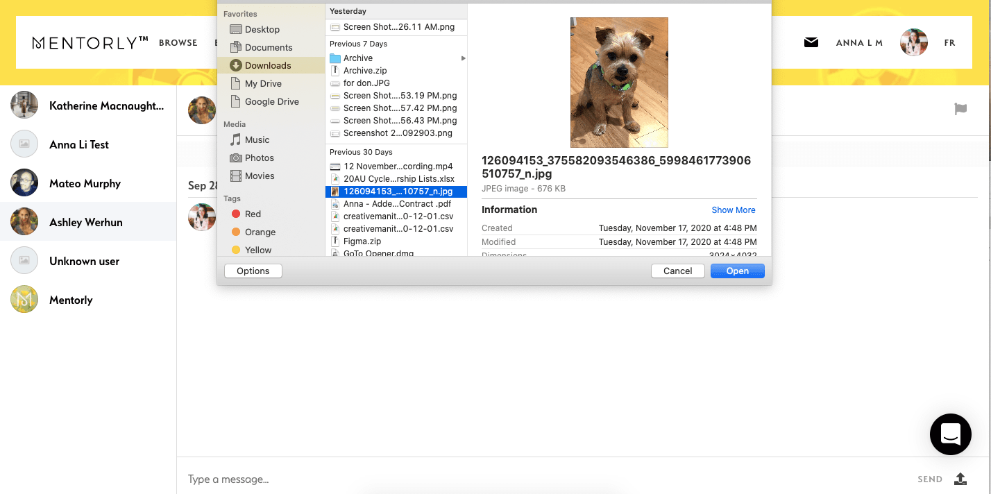 Our Mentorly Inbox allows you to attach and send any file from your computer 🗂 .