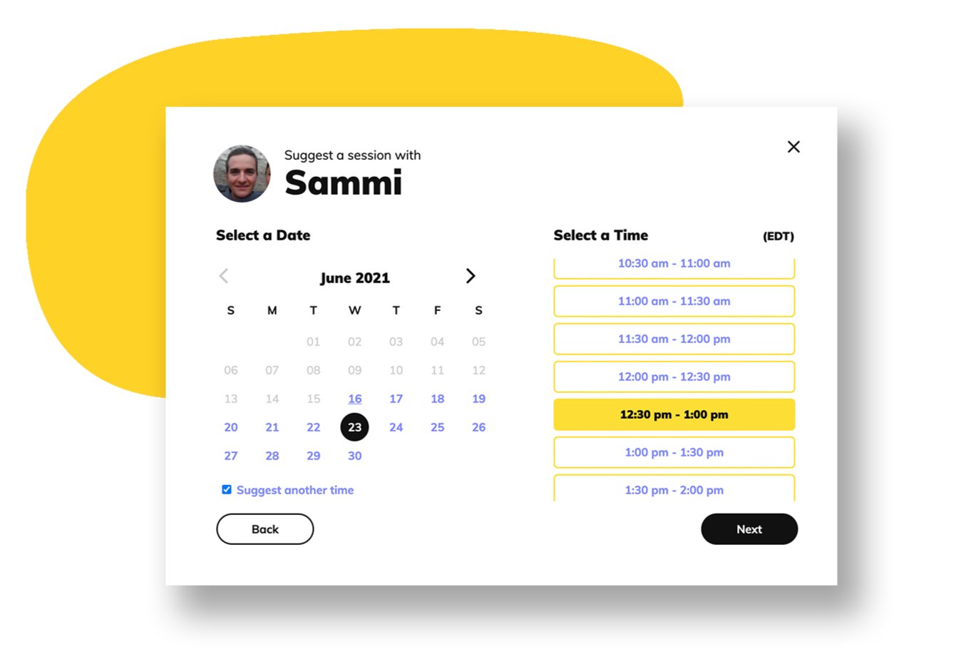 Booking a session has never been easier! Mentees can now book an available time slot or suggest a date and time to meet.